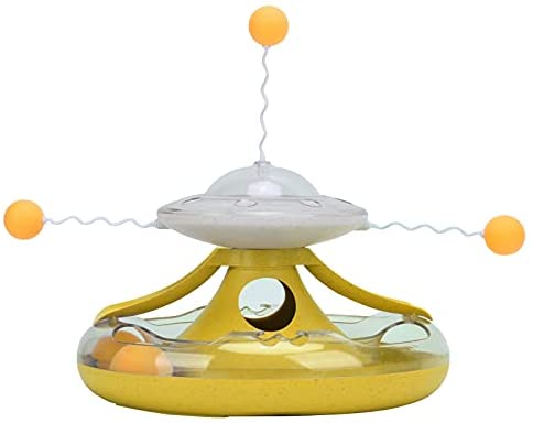DONN Cat Treat Toy, Transparent Track Multifuction Kitten Toys with a Cat Stick for Relieving The Worries of Being Unaccompanied(Yellow)