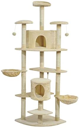 KKVV Large Cat Tree Play Tower, Multi-Level Wooden Cat House Large Cat Activity Centre, Modern Cat Tree with Sisal Scratching Posts and Condos, 78″, Beige