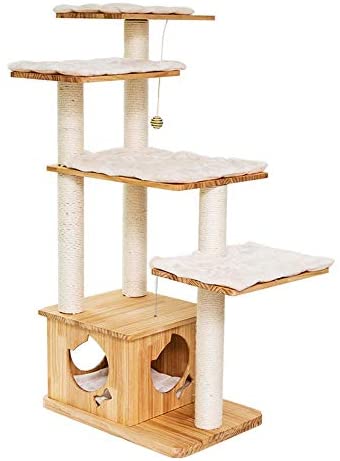 Haieshop Cat Tree Condo Scratching Post Cat Tower Solid Wood Wooden Sisal Belt Nest Cat Villa Cat Climbing Frame Cat Nest 714