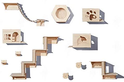 HOLPPO Multi-Level Cat Tree – Wall-Mounted Solid Wood Cat Climbing Cat Claw Column Cat Wall Hanging Claw Grinder Shelf Cat Wall Cat Climbing Ladder Pet Furniture Play House Cat Tree Tower
