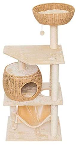 PattyHong Woven Basket Cat Tree with Space Capsule, Indoor Cat Tower, Scratching Post Jumping Toy, Climbing Frame Multifunctional Apartment