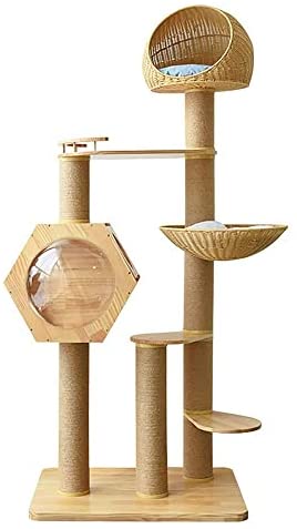 HONGLIUDSF Comfortable and Leisurely Cat Tree Scratching Post Cat Tower Cat Climbing Frame Sisal Rope Cat Grab Post Solid Wood Cat Climbing Frame Cat Tree 712