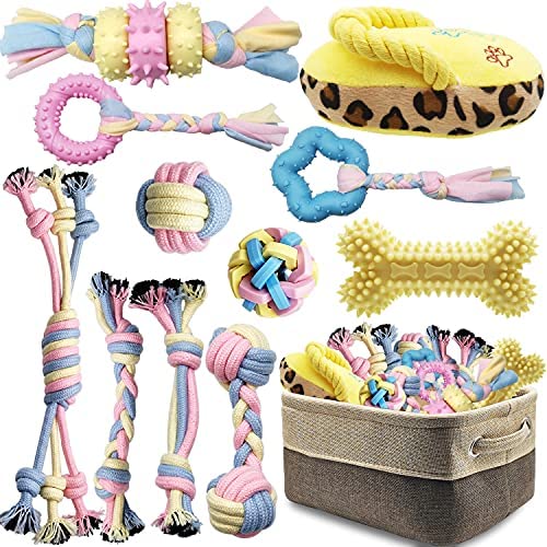 Puppy Toys Interactive Dog Toys Dog Chew Toy Puppy Teething Chew Toys Puppy Supplies Small Dog Toys Rope Balls Dental Teeth Cleaning Toothbrush Squeaky Puzzle Tug Pet Stuff and Toys Storage Basket