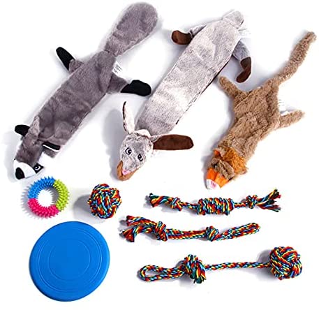 Animals Shapes Training Toy, No Stuffing Puppy Chew Teething Rope Toys Set Durable Squeaky Dog Toys Set for S/m/l Dogs Pets Animals(Fox, Wolf, Squirrel,3 Pcs)
