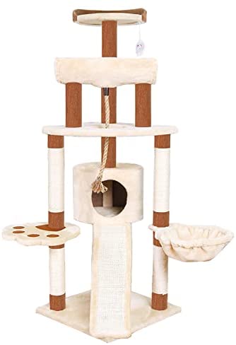 LJJSMG 59.1-Inch Multi-Level Cat Tree, with Platform Cat House and Scratching Posts Space for Large Cats, for Indoor Density Board Cat Towers Cat Condo