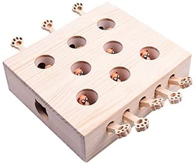 Cat Interactive Wooden Toys with 5-Holed Mouse Hole, Puzzle Hunt Toy Whack a Mole Game Cat Punch for Indoor Play Box Pet Supplies for Cats