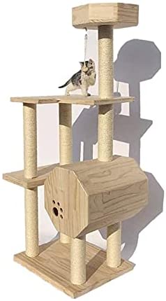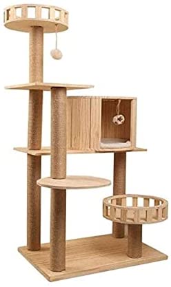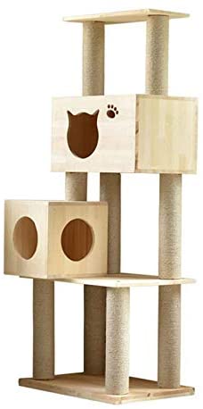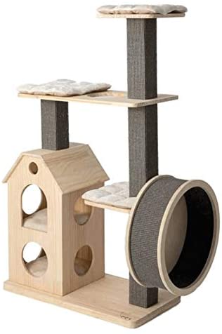 XLAIQ Solid Wood Cats Tree Climbing Tower Nest Cats Tree House Cats Fitness Frame Mute Bearing Runner Grinding Toy