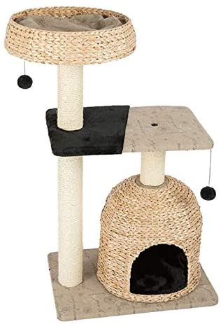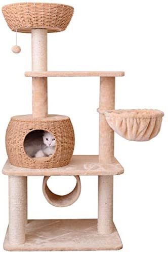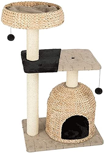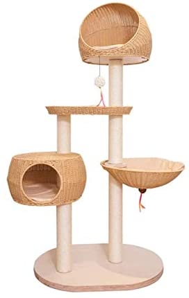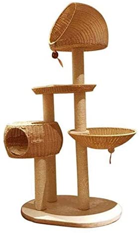 ZOUSHUAIDEDIAN Rattan Cat Tree Cat Tower Kitten Small Cats Playground Furniture with Natural sisal Scratching Post and Plush Mouse-Available for Playing Relax and Sleep,Multifunctional Cat Apartment