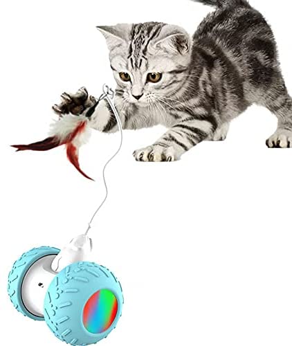 Automated Cat Toys for Indoor Cats,3 Modes USB Charging Cute Interactive Toy Balls with Mouse and 3 Feathers for Kitten 2 Speeds