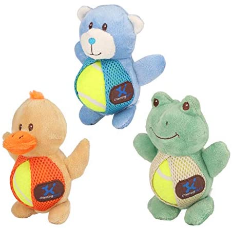 Dog Plush Toy, Plush Squeaky Dog Toys Set Nontoxic Animals Shapes Training Toy with Removable Squeaker for Puppy Small Medium Large Dogs(3 Pcs)