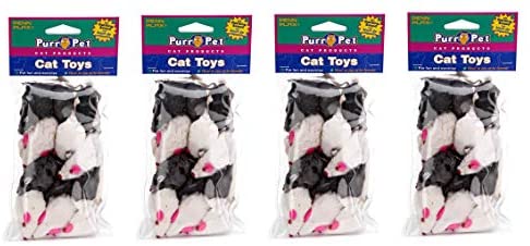 Penn Plax Play Fur Mice Cat Toys – Mixed Bag of 12 Play Mice with Rattling Sounds – 3 Color Variety Pack – CAT531, Black and White (4 Pack)