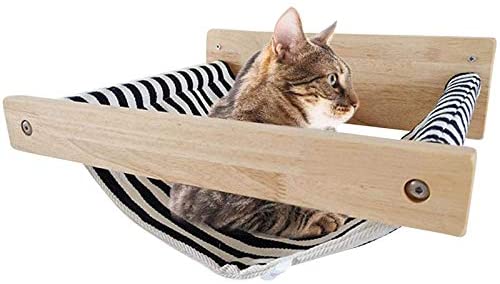 HAOXJ1 Wooden Cat Shelves,Wall-Mounted Cat Shelter Cat Hammock Cat Wall Toy Solid Wood Material is Stable and Strong Cotton Canvas Bed for Kitten