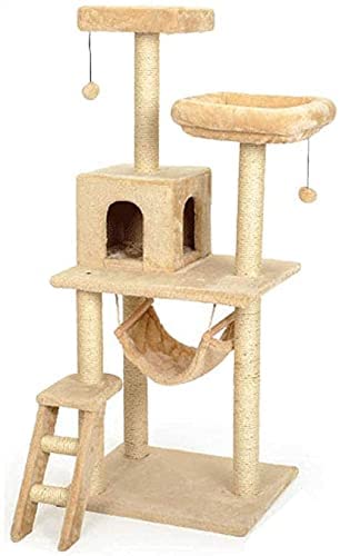 WYJW -Cat Climbing Tree Cat Tower Furniture Kitten Play House Cat Activity Centres Sisal-Covered Scratching Post with Plush Perches Ladder, 52.8 Inch