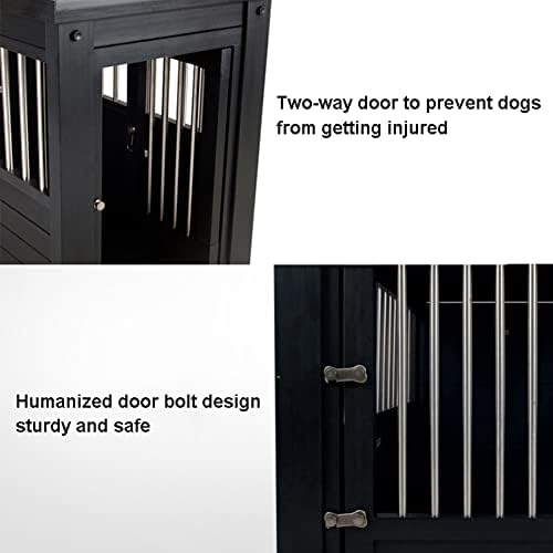 Awesome Dog Cage:This indoor dog crate is perfect for keep pets away from potentially dangerous, especially without owners’ supervision. Meanwhile, protect your furniture from destructive dogs. The wood surface is waterproof hence it is a easy task to keep the cage clean. and prevent them from escaping. Good crate never sacrifice ventilation for security. It offers ample ventilation on all sides so your pet stays cool and comfortable inside.