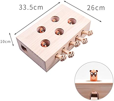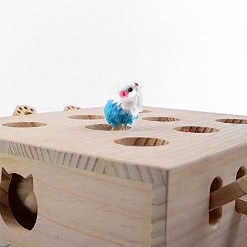 Fakavear Cat Play Box, Cat Interactive Wooden Toys Whack A Mole Game for Indoor Punch Puzzle Hunt Toy Funny Kitten Safe Catnip Teaser Fun Box Paws Scratcher
