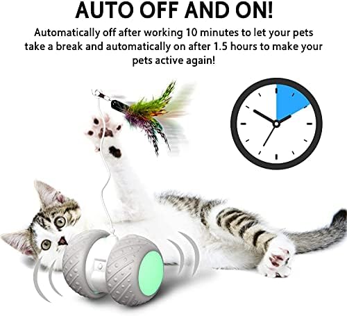 【USB CHARGE & LARGE CAPACITY BATTERY】The electronic cat toy was built-in rechargeable 620 m AH battery, 2 hours charging time and can work for 8 hours in standard mode. It has special design of asymptotically on and off function, it will automatically off after 10 minutes working so that your pets could take a relax, and it will automatically on after 1.5 hours off to make your pets active have fun time again.