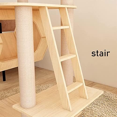 LJJSMG 76. 4 Inches Pine Board Multi-Level Cat Tree Tower, with Platform Rattan Cat House and Scratching Posts for Large Cats Center Climbing Frame, for Indoor Relaxing for Cats