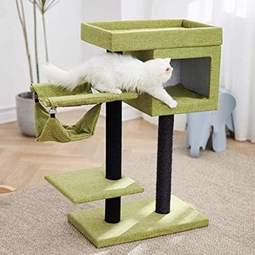 [Spacious cat bed]: The spacious cat house is covered with cloth and equipped with soft cushions to provide a comfortable sleeping environment for cats. The cloth hammock and cat bed provide more rest area for cat friends.