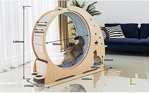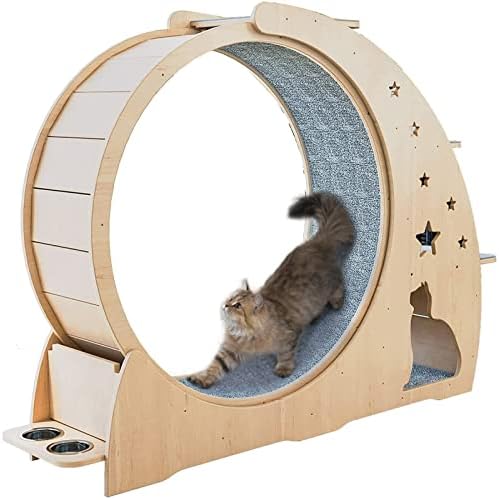NesRabbit Cat Treadmill Cat Treadmill, Solid Wood Pet Cat Climbing Frame Exercise Wheel, Running Sport Wheel Cat Tree with Dinner Plate & Jumping Platform, for Running, Spinning