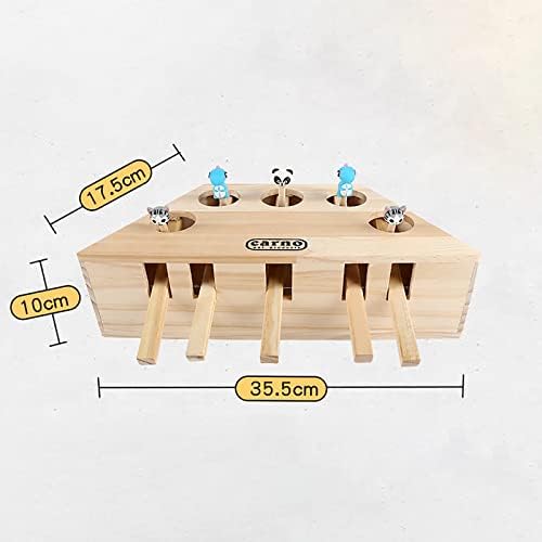 OMVOVSO Interactive Cat Toys, Wooden Toy Mole Mouse Puzzle Box with Cute Cartoon Toy Cat Hunt Gaming Training Scrape 5 Holes,Brown