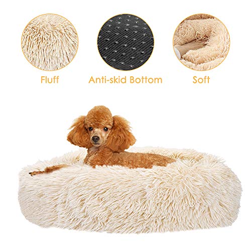 BinetGo Dog Bed Cat Bed Cushion Bed Faux Fur Donut Cuddler for Dog and Cat Joint-Relief and Improved Sleep – Machine Washable, Waterproof Bottom (Medium, Beige)