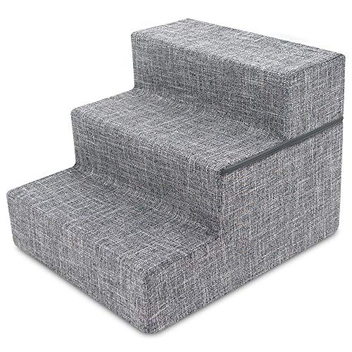 • Made in USA Foldable Pet Steps/Stairs with CertiPUR-US Certified Foam by Best Pet Supplies – Gray Linen, 3-Steps (H: 16.5″)