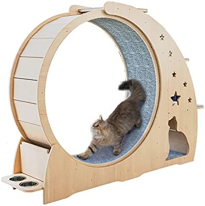 SUPFAKE Cat Treadmill Solid Wood Exercise Wheel Unique Designed Running Sport Wheel Cat Tree Large Rollers for Cat’ Fitness Toys Cats Furniture Pet Supplies