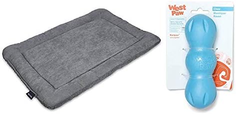 West Paw Big Sky Nap Flat Dog Mat with IntelliLoft Fiber and Fill Durable Lightweight Mat (Boulder, Large) & Zogoflex Rumpus Dog Chew Toy – Floatable Toy for Dog (Medium, Aqua)