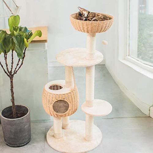WYJW -Cat Climbing Tree 55.5 Inch Multi-Level Cat Tree House Furniture with Paper Rope Condo Perch Sisal-Covered Scratching Posts