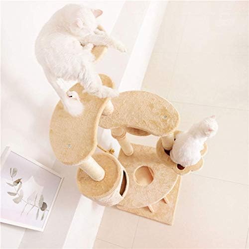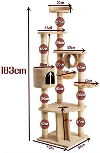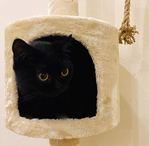Premium Material:Made of solid density board to keep the whole cat tree strong and stable; The cat tower is composed of good quality plush material, which is very soft and comfortable; Sisal-covered posts adds more fun for playtime. Reinforced posts wrapped with natural sisal rope keeps your cat from scratching your furniture and allows your cat to have a fun way to exercise.