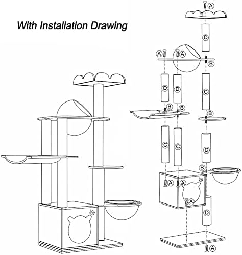 ❤ EASY TO ASSEMBLE: Our cat tree is equipped with detailed installation drawings, see the second picture for the specific size, you will be able to assemble it in a short time, without having to wait too long to have fun